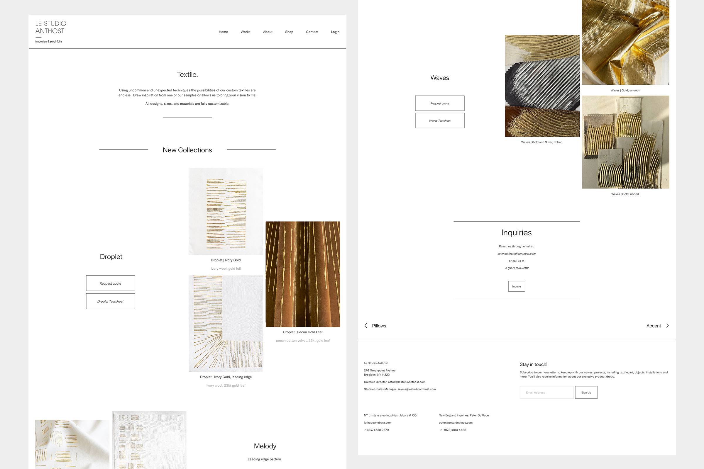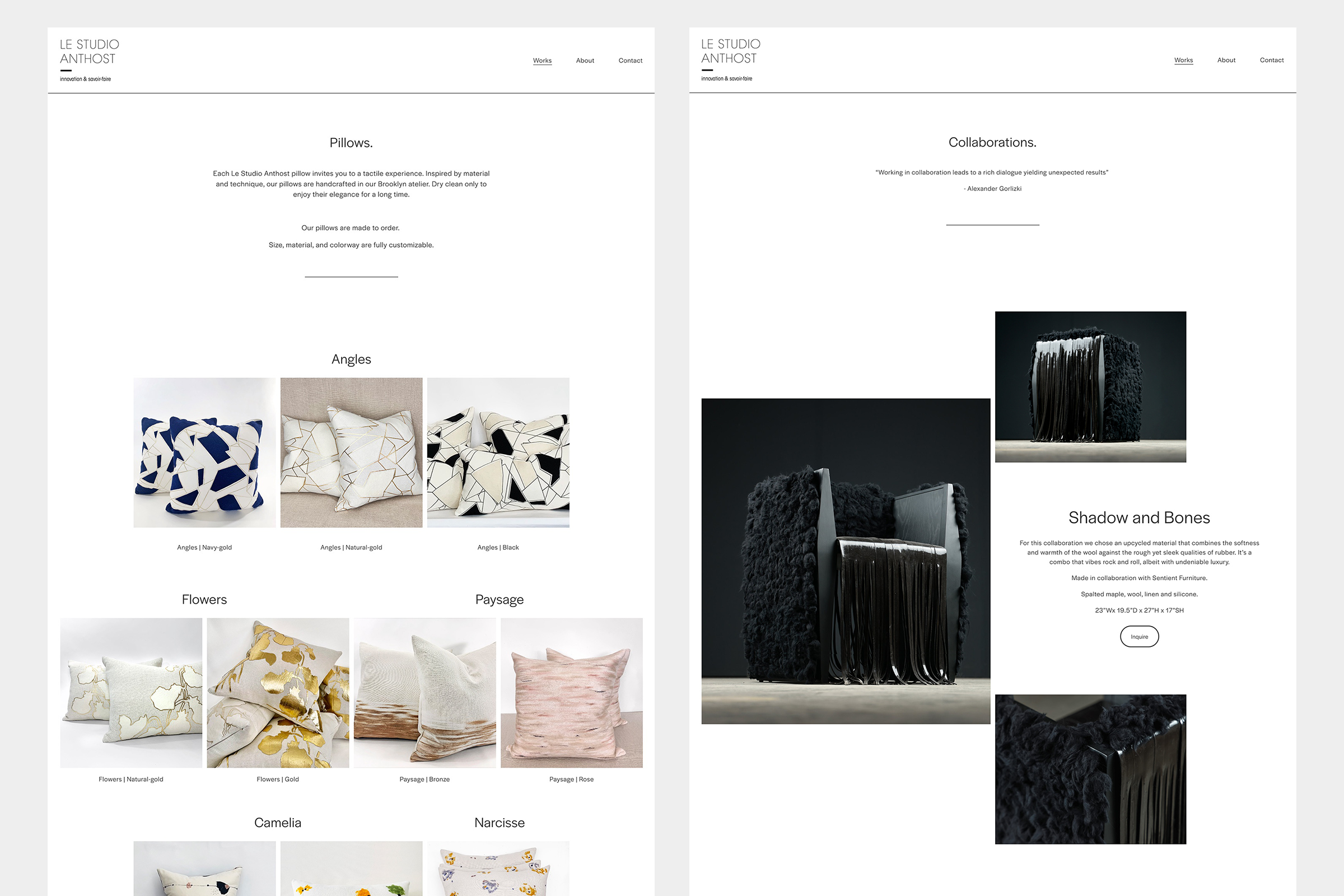 Le Studio Anthost needed a cohesive visual identity and a communication strategy. The rebrand began with the website, which now hones in on the Studio’s modern, mythical elegance. The brand exists in a warmer, more intimate way on social media, where the reels I created every week share the studio atmosphere and creative process. The digital product catalogue archives past work and inspires future creations.